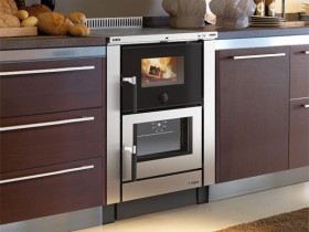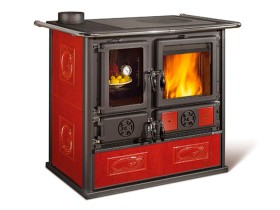 В печи есть большая варочная поверхность из полированного чугуна с двумя конфорками, а также вместительный духовой шкаф, объемом 78 литров, со стеклянной дверцей и встроенным термометром.