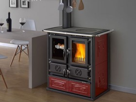 Среди итальянских печей-каминов отопительно-варочного типа La Nordica Rosetta Liberty отличается особой компактностью и сравнительно невысокой стоимостью. Небольшие размеры печи позволяют поставить ее где угодно, и это очень выгодный вариант, если на вашей кухне мало места. Высота печи позволяет удобно готовить на ней пищу. Варить, тушить или жарить можно на чугунной поверхности плиты или же непосредственно на открытом огне, так как имеется одна конфорка. Встроенный духовой шкаф объемом 29 л позволяет печь изделия любой сложности, а термодатчик предназначен для контроля температуры в духовке.