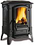 Дровяная печь-камин Giulietta X итальянского бренда La Nordica представлена в черном цвете.