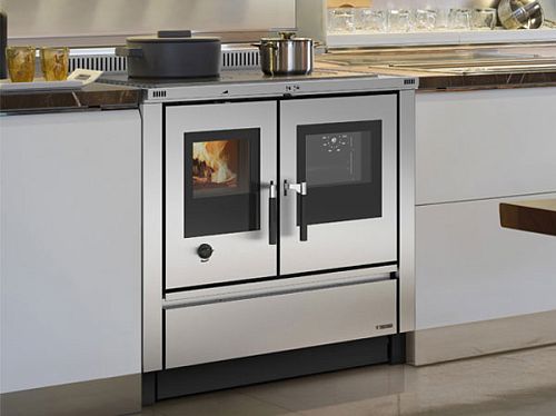 Чугунная дровяная печь Padova Inox итальянского бренда La Nordica представлена в варианте из нержавеющей стали.