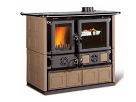 Чугунная дровяная печь Stefany con Forno итальянского бренда La Nordica представлена в 3 цветах: Bordeaux, PIETRA NATURALE, Pergamena.