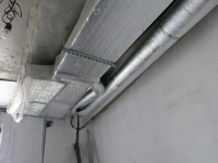 Приточно-вытяжная система ПВ1производительностью 520 м³/час расположена на лоджии в техпомещении. Паровая камера вмонтирована в приточный воздуховод. Увлажнитель Carel управляется от электронного датчика протока воздуха. К увлажнителю подключен канальный датчик влажности: защитный датчик-ограничитель установленный в воздуховоде после парораспределителя.